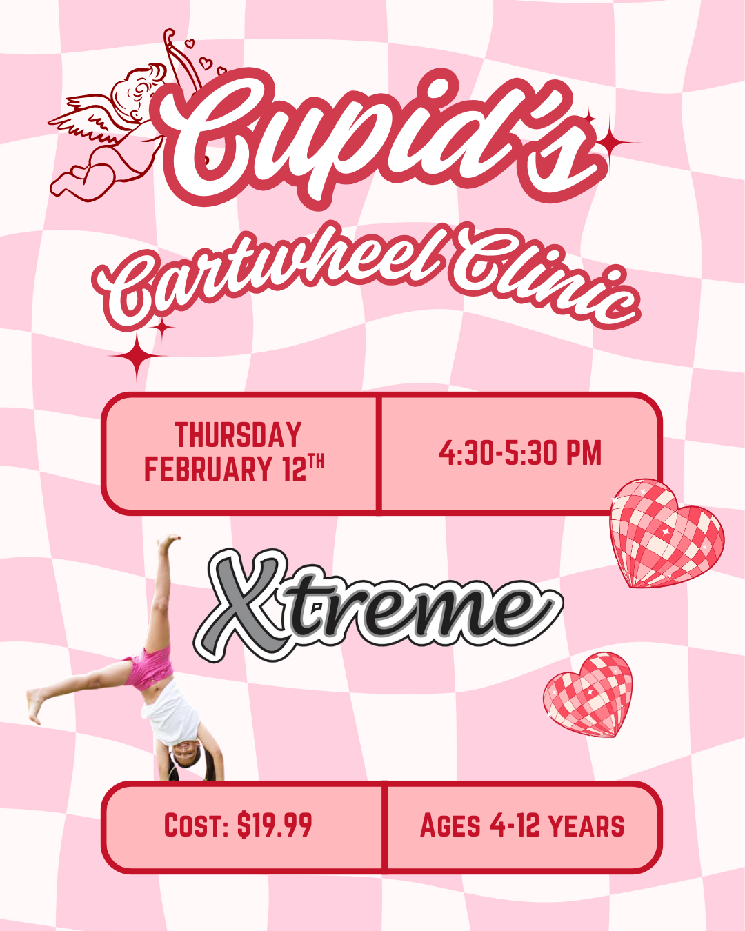 Fall in love with new skills this February! Whether your athlete is just starting their tumbling journey or looking to polish their technique, our Cupid Cartwheel Clinic is the perfect place to heart-work and hustle. Our instructors focus on the fundamental mechanics of a perfect cartwheel in a high-energy, supportive environment. Give your child the confidence to flip for joy!